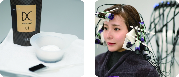 また、熱ダメージを抑制する「低温」施術が可能で、一般的なデジタルパーマと比べ、髪への熱負担を大幅に 削減できます。これだけダメージレスを追求した処方、時短施術でありながら、独自の特許システムにより、しっかりと理想の“ゆるふわ” カーリングをかなえます。
